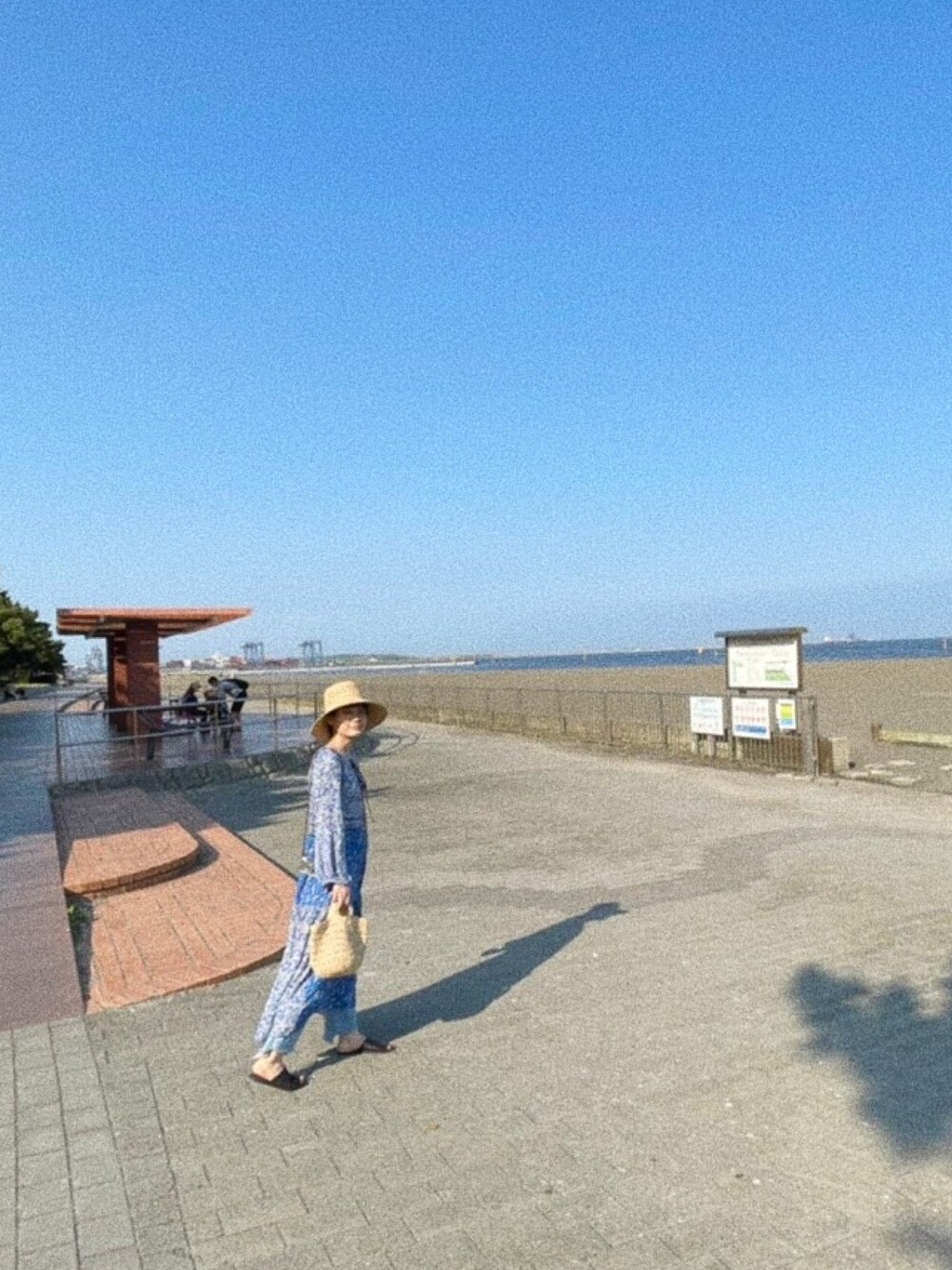 遠すぎてわかりにくいですが😂 朝あげたワンピースの全身🌷 花柄ほんとかわいい🌸