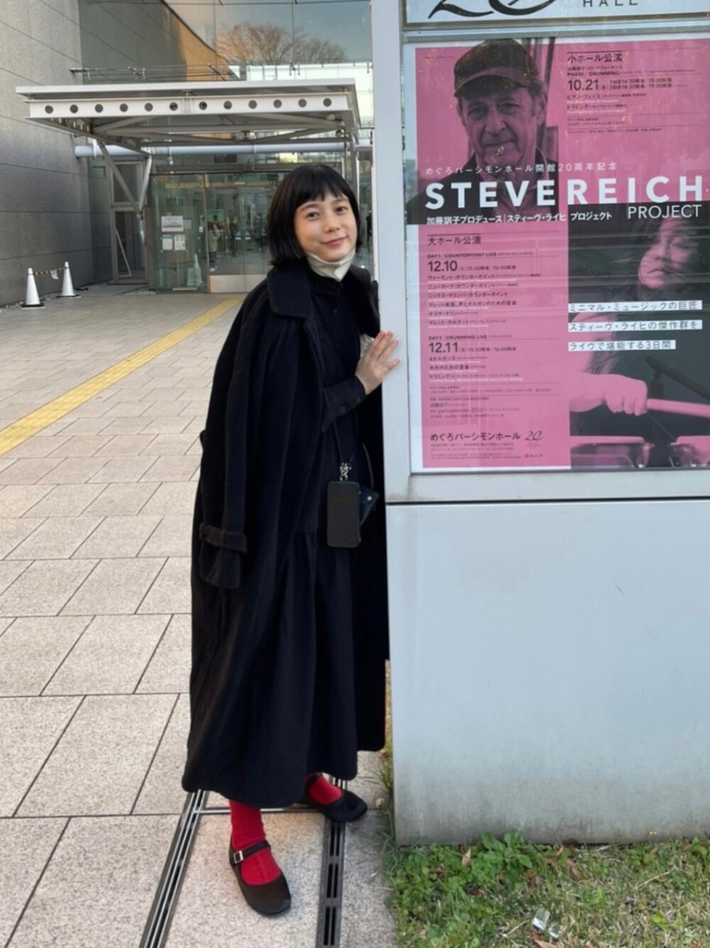 黒コーデに赤靴下も好き❣️ ワンピースは IG @ryojiobata コートは IG @hart_sho
