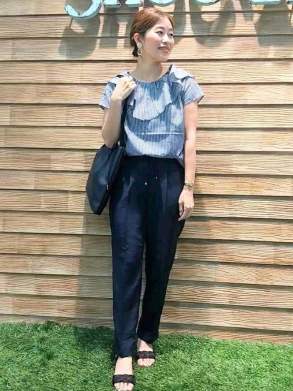 ご覧いただきありがとうございます◡̈ ❋ 丸みのあるデザインが 大人可愛さを演出してくれる ラッフルカラーのブラウス♪ 一枚でインパクトあるデザインに✨ ボトムは足首の見えるアンクル丈で すっきりとした印象👌 きちんと感があるのに 履き心地がいいのがポイント! 麻調素材で涼し気な印象です🌿 world online store にもスタイルスナップを たくさん紹介しています♪ プロフィールのリンク🖥より 是非ご覧下さい💓