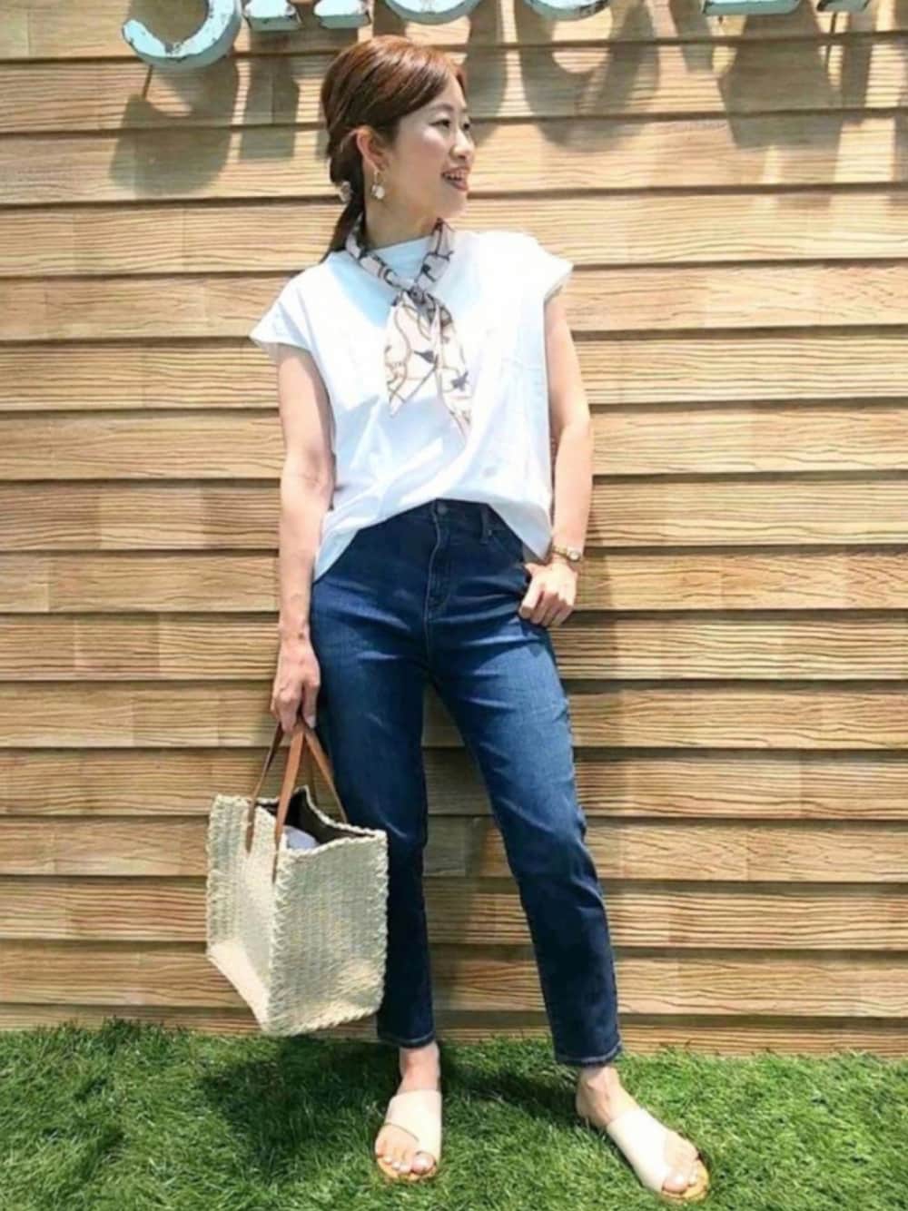 ご覧いただきありがとうございます◡̈ ❋ ファッションの気分はすでに秋 𓂃 🍁 でも まだまだ真夏日は続きますね💦 world online storeでご紹介してきた 夏のコーデは初秋にも大活躍です✨ 一部ご紹介します ◡̈♡ ・-・-・-・-・-・-・-・・-・-・ Tシャツは女性らしいフレンチスリーブ🌷 しっかりめの生地になっているので カジュアルにもキレイめにも着回し◎ 接触冷感素材なのも嬉しいポイント♪ シンプルなTシャツ×デニムコーデには スカーフをプラスしてワンポイントに✨ ・-・-・-・-・-・-・-・・-・-・ world online store にもスタイルスナップを たくさん紹介しています♪ プロフィールのリンク🖥より 是非ご覧下さい💓