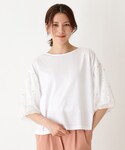 E r i (SHOO・LA・RUE)のTシャツ/カットソー「◆【S-L】袖チュールレースプルオーバー」を使ったコーディネート