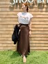 ご覧いただきありがとうございます◡̈ ❋ 夏のコーデをご紹介します🌺 ロゴが大人可愛い フレンチスリーブTシャツ🤍ˊ˗ サラッとした肌ざわりが 心地良い生地感です🧵🪡 着丈が長く サイドにさりげなく スリットが入っているので タックアウトにもおすすめです♪ トレンド感あるマーメイドスカート🧜♀️ ポンチという表面がキレイ見えする ジャージ素材を使用しているので 伸びが良く穿き心地◎✨ ウエストゴムタイプなので 着脱が楽ちんなのもポイントです🤎 🏷夏のTシャツフェス 🏷ゆみっつ夏のロゴまつり 本日最終日🥳🎉 ケンさん主催 『夏のTシャツフェス』4回目 ゆみっちゃん主催 『ゆみっつ夏のロゴまつり』3回目 参加させていただきます💕 1週間ありがとうございました✨ のんびり投稿な私でも 久しぶりにフェス参加出来て 楽しい1週間でした🥰 ちょっぴり秋色コーデですが まだまだ夏の撮り溜めあるので またゆるっと ご紹介出来たら いいなと思っています🍹 world online store にもスタイルスナップを たくさん紹介しています♪ プロフィールのリンク🖥より 是非ご覧下さい💓