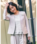 E r i (SHOO・LA・RUE)のノーカラージャケット「◆【洗える/ストレッチ】ダブルクロス Vネック ジャケット」を使ったコーディネート