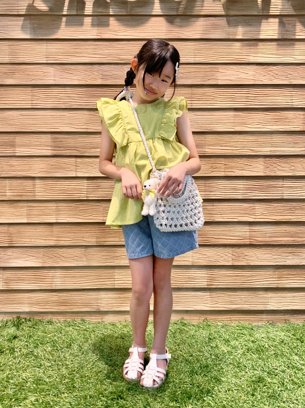 ご覧いただきありがとうございます◡̈ ❋ キッズ商品をご紹介します🐻 🧵SARA 8歳132cm トップス→140cm ボトムス→130cm着用🪡 大きめフリルがポイントになった デザインブラウス💛 ラメ糸が織り込まれた カットドビー素材を使用✨ シンプルながら表情のある 格子柄のデニムパンツは 男女兼用でリンクコーデにも おすすめです🍒 夏が終わりますね… 自分の時間をなかなかとれず 夏コーデを消化出来ずにいます😂 それだけ仕事以外の時間を 子供達と過ごせたと言う事😌🍉 しばらく夏コーデが続きますが ご了承ください🙇♀️ 気付けばいつの間にか8月で wearを始めて3年が経ちました💐 リアル優先で投稿頻度も低く コメント返信ゆっくりですが (必ずお返事しますね🥲) 変わらず仲良くしてくださる皆さま いつも本当に有難うございます🥹 4年目も大好きなwearを マイペースに楽しみたいです😊 最後までご覧いただき ありがとうございました🎶 world online store にもスタイルスナップを たくさん紹介しています♪ プロフィールのリンク🖥より 是非ご覧下さい💓