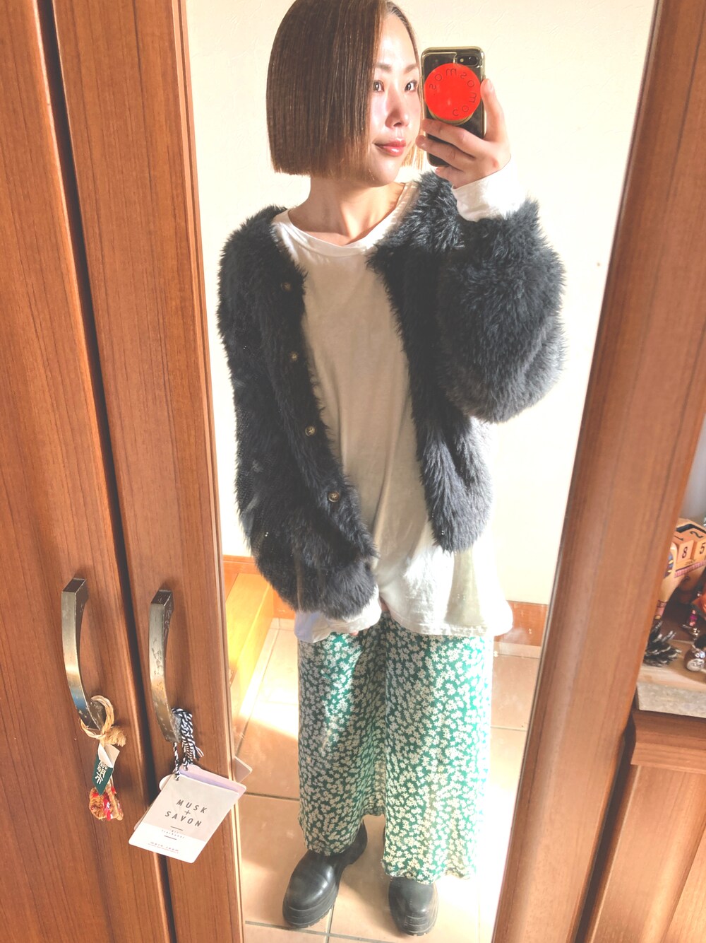 美容室へ ボブにストレートかけた 天気よすぎて 薄着スタイル♩ これでも車の中は暑いw カーディガンふあふあで お気に入り。 スカートも可愛くて大好き