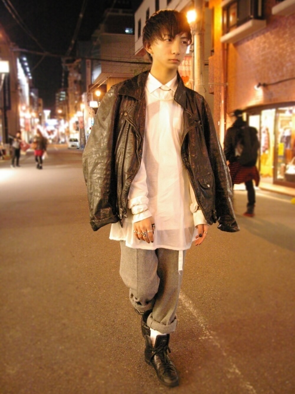 ライダース;古着 シャツ:Y's トップス:DRK SHDW パンツ.krisvanassche 靴:Alexander McQUEEN✖︎PUMA シャツの柄が透けてるところ重要。