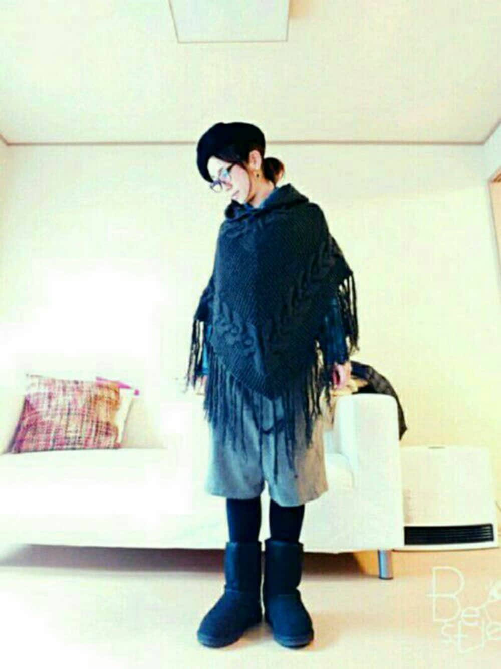 デニムジャケットにポンチョ UGGの後ろのハラコ柄が好き♪