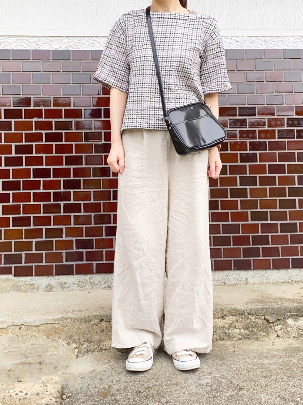 あか*のシャツ/ブラウス「綿麻サッカーチェックスクエアネックブラウスⅡ」を使ったコーディネート