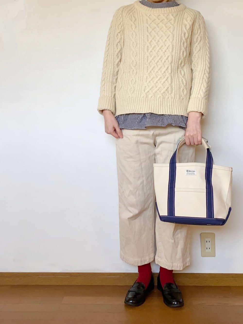あか*のニット/セーター「BEAMS BOY / 3ゲージ アラン クルーネック ニット」を使ったコーディネート