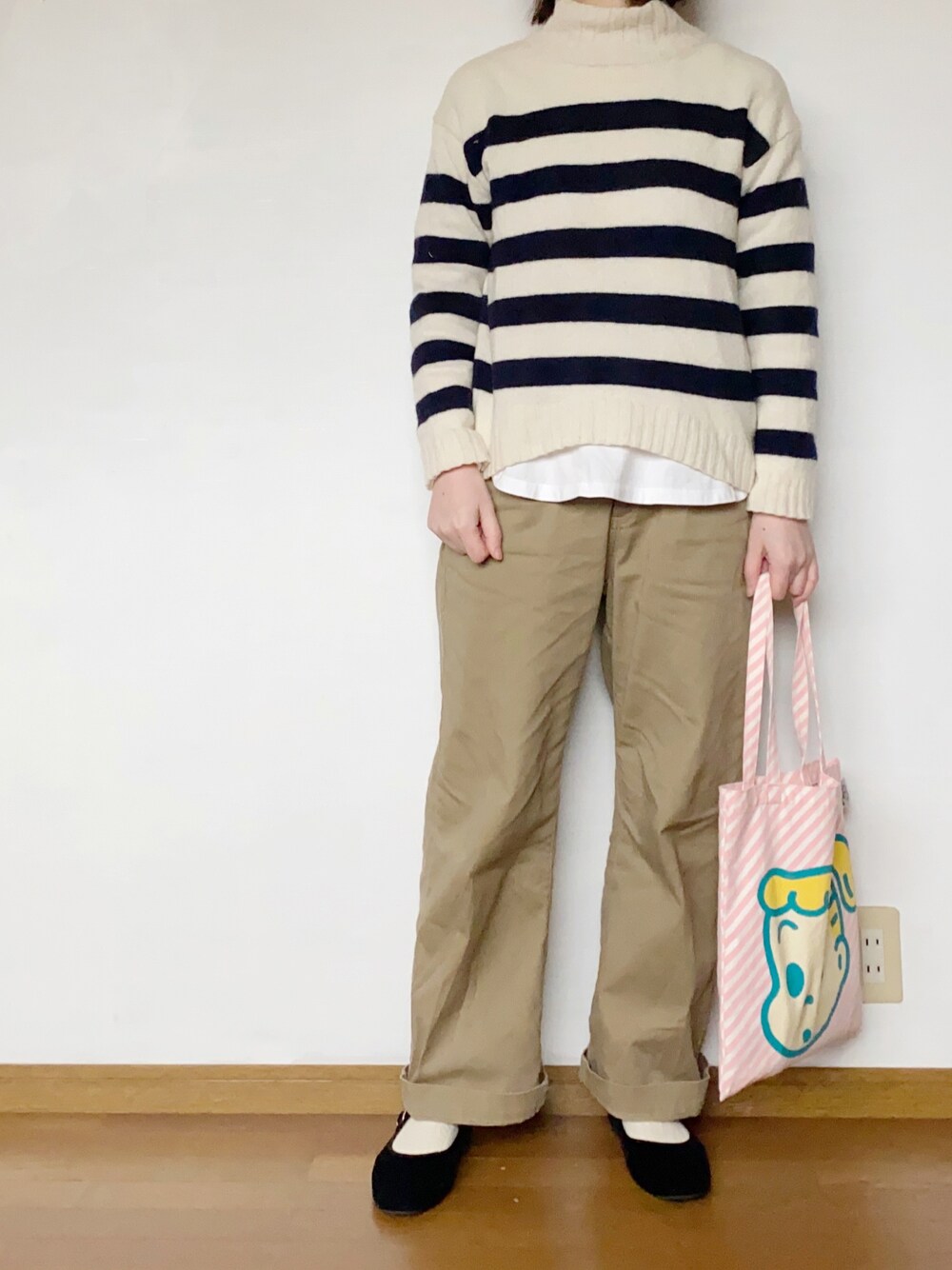 あか*のチノパンツ「チノタックワイドストレートパンツ」を使ったコーディネート