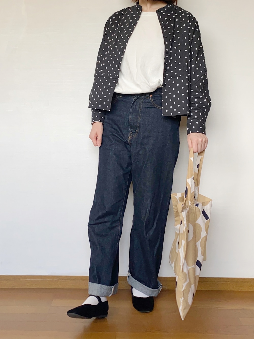 あか*のデニムパンツ「【WEB限定】ハイウエスト テーパードデニムパンツ」を使ったコーディネート