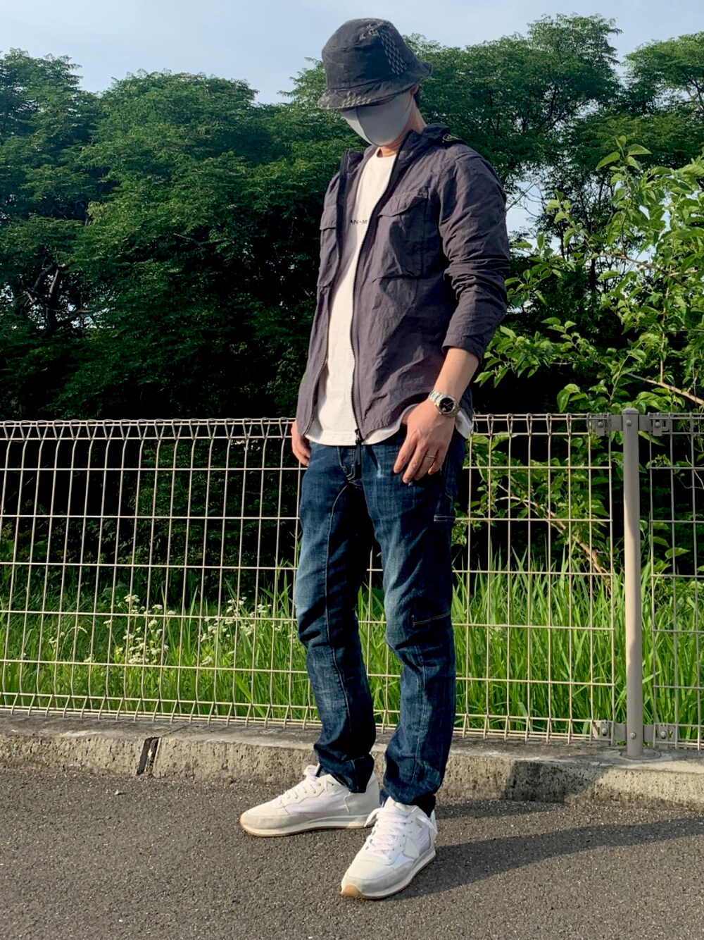 久々にSTONE ISLANDの21ssを購入。 天気良すぎてナイロン暑いw 腕じゃなくて肩にタグがあるよ👀