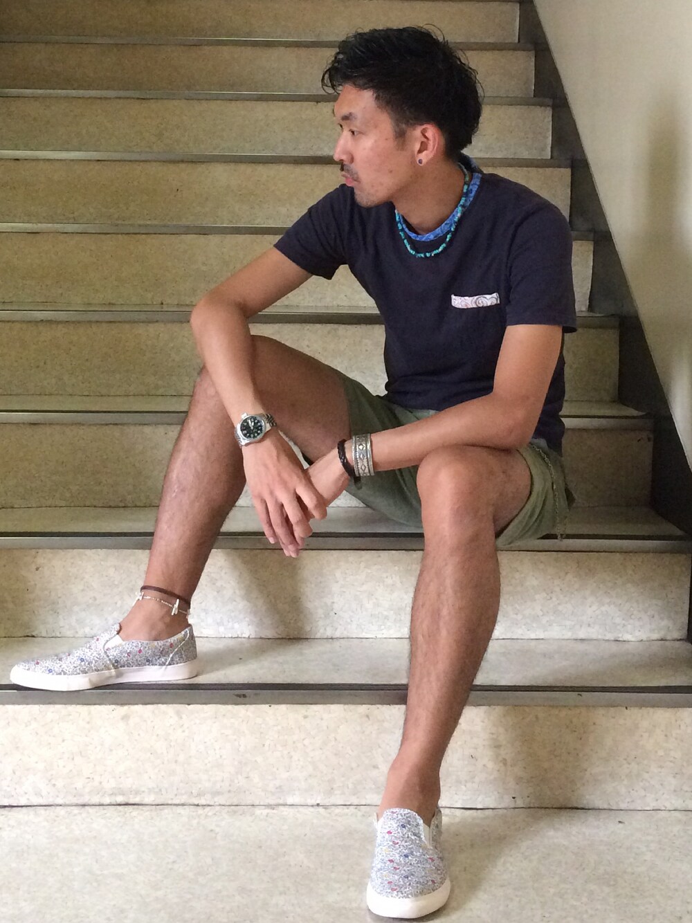 今宵は、上下 order made remake アイテムを使ったアメカジコーデ 足元はボタニカル柄のスリッポンをチョイス