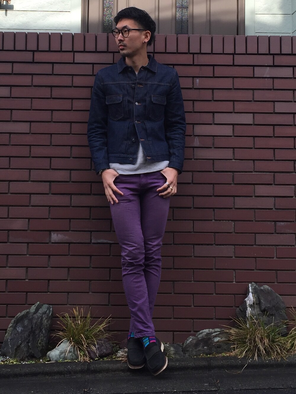 今宵は、、、 ロックカジュアル ロックなスキニーパンツと カジュアルなデニムジャケット を合わせる 色味は寒色系でまとめる