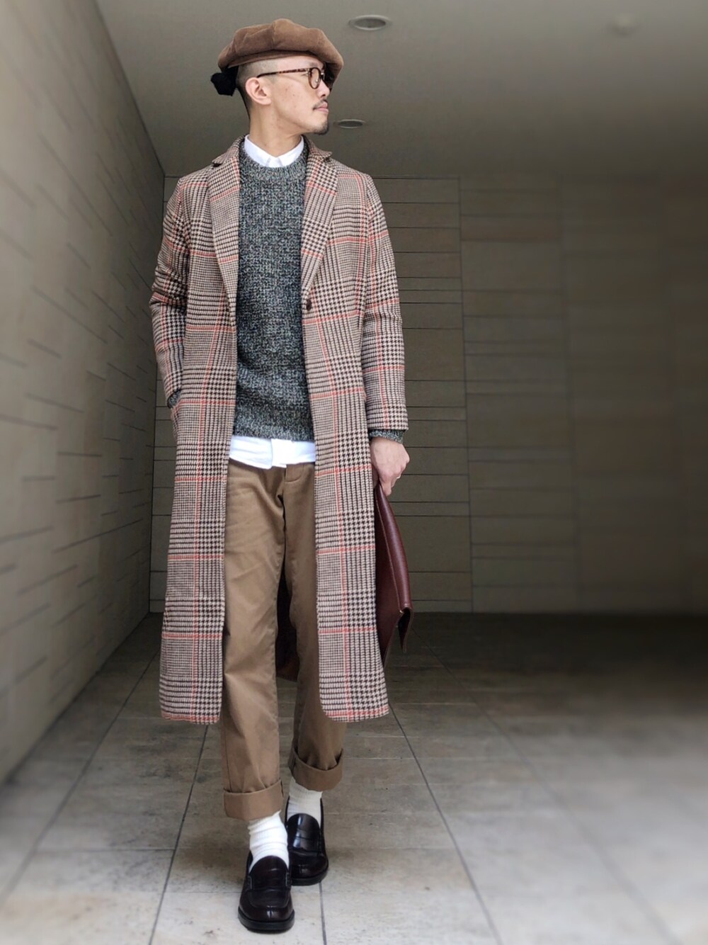 皆様おはようございます 三連休いかがお過ごしでしょうか、僕は木曜から続く連勤がやっと今日終わります そんな疲労困憊なコーデがこちら、ドン 疲れ具合は全く伝わりませんね セーター以外はワントーンでまとめました と言っても、素材感を変えたりコートはチェックだったりでシンプルになり過ぎないように たまにはベレー帽とローファーでトラッドな感じで