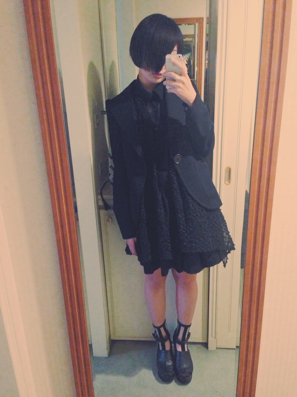 最近はほとんど真っ黒な格好ばかり 洋服よりも、髪がすごい伸びたなーって