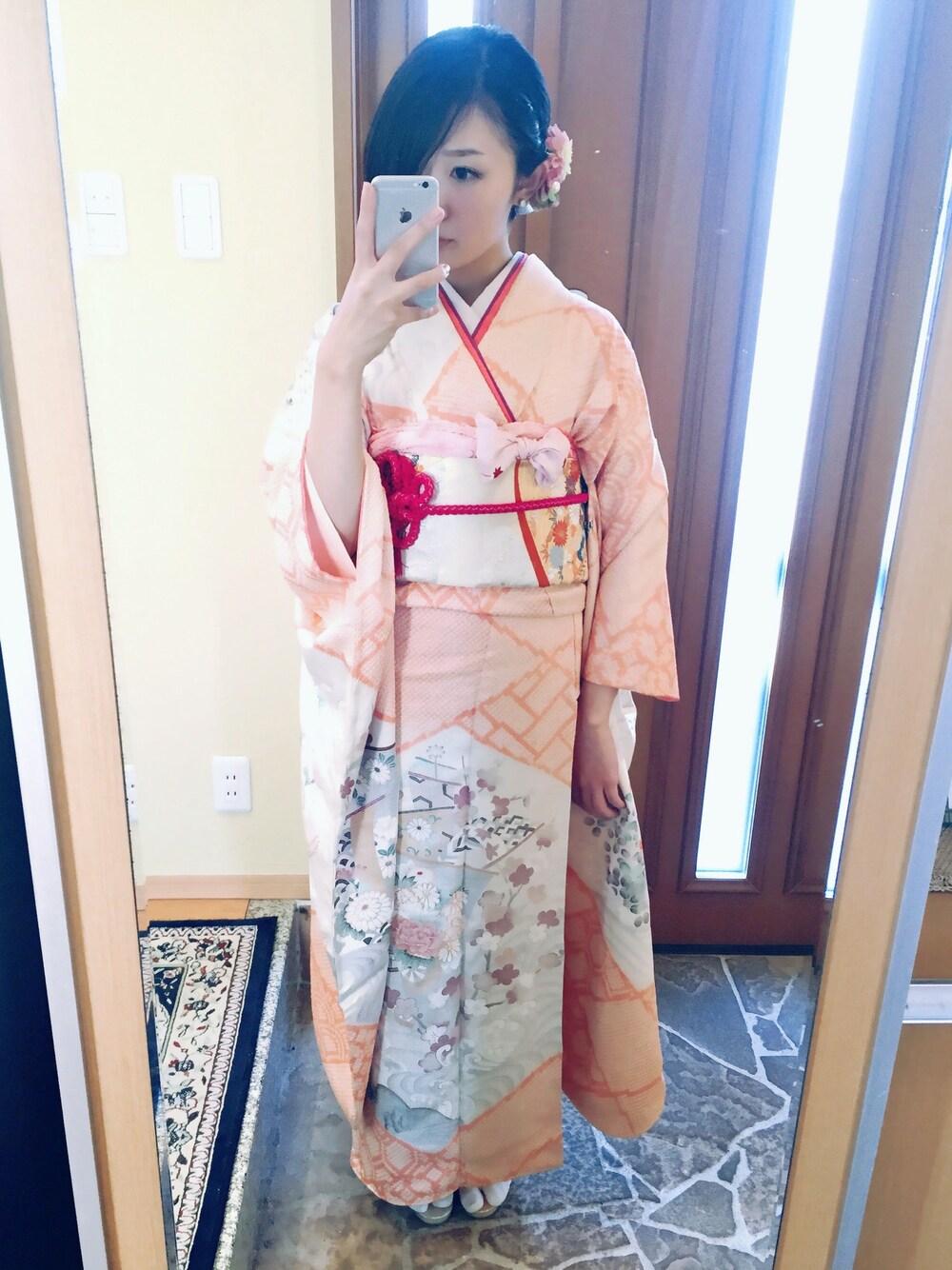 母の振袖を着せて貰いました 最近は真っ黒ばかりだけど、前は淡い色の洋服が 好きで、袖を通すとなんだか懐かしい感触がしました 今年はたまに優しい色も着てみたいですね