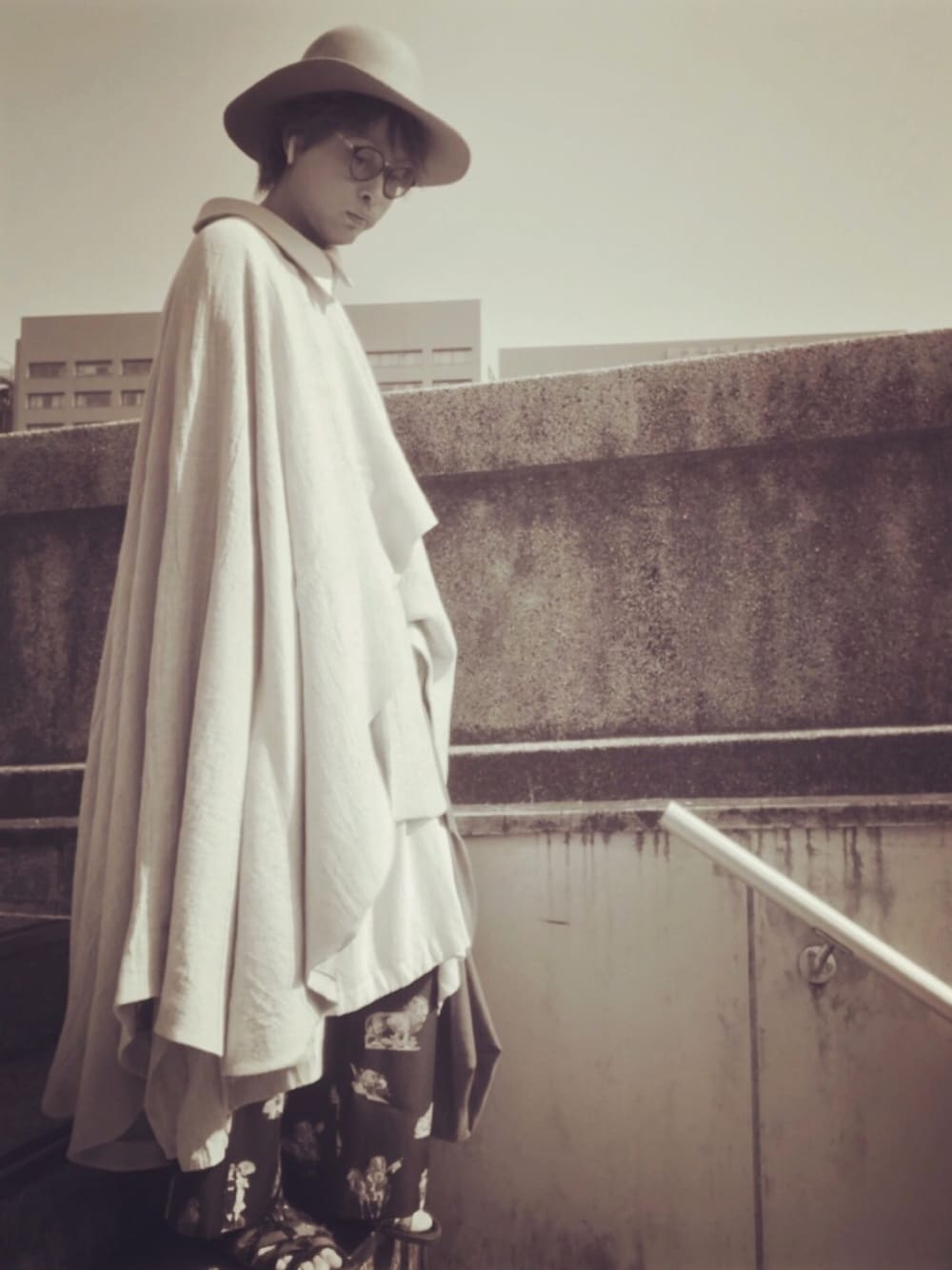 ha za maのポンチョコート。 セピア色だと印象も変わる。 サイドは踵まであってかなり長いんです😙