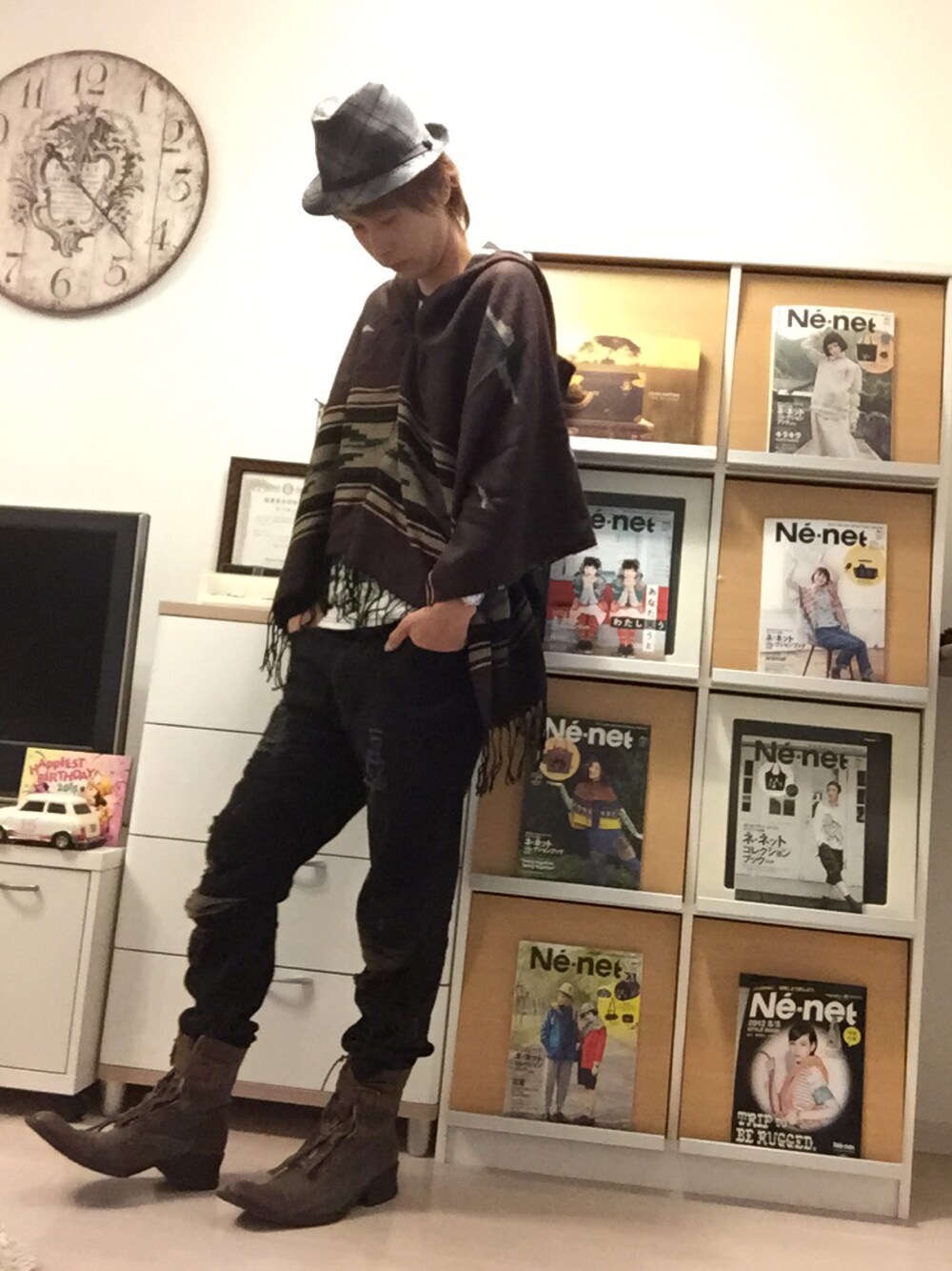 ご覧いただきありがとうございます😄🎶 いつもいいねをくれるフォロワーさん、感謝です(≧з≦)❤️ ポンチョ第??弾です(*'ω'*)✨ 半端丈のポンチョには、細身のパンツとブーツが相性がいいですね👀✨ ポンチョが過ごしやすい季節ですね(*´∀`*)💓 今まで画像を加工してましたが、服の色が見えづらいので今回は加工なしでUPしました( ^ω^ ) やっぱり加工なしが見やすいかな??👀 これからも色んなコーディネートをUPしていきます😁 もし良かったら、いいね&フォローよろしくお願いします😆💕