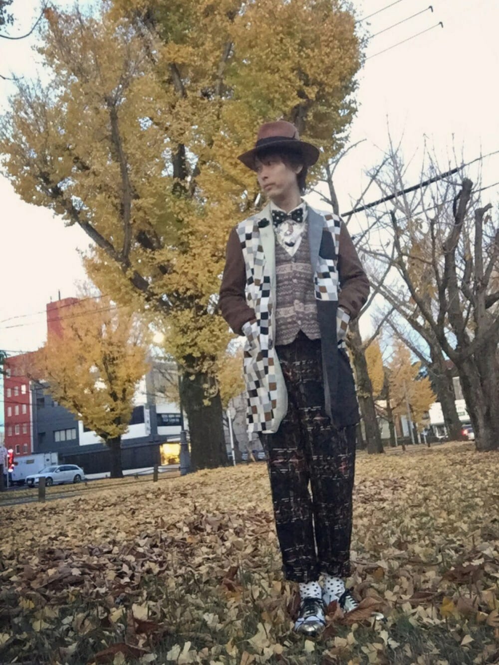 アウターコーディネート。 二発目は、NIRAME.COのジャケット😄🎶 色の配置が絶妙で素敵すぎます(♡´∀`)* 秋らしいブラウンがイチョウ並木に合う🙈💕 個性派スタイルが好きな自分にとっては、 NIRAME.COは大好きなブランドです😍 同じ熊本出身の方がデザイナーということもあって、 これからもずっと着続けて広めていきたいデス😉🎶 皆さんもNIRAME.COよろしくお願いします😋💕