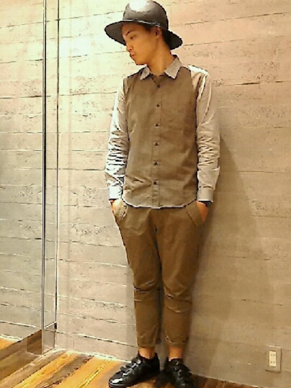 初投稿です~ HAREのアイテムを中心におじさんスタイルにしてみました😄 足元にスニーカーを持ってきて流行りのスポーツ要素をmix😉レザーなので大人っぽさもプラス😉