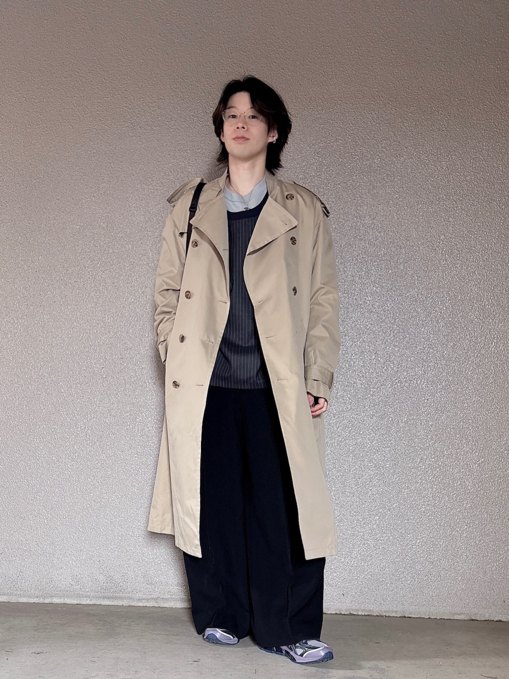 中にいれたビブスをデザインソースにしたアイテムを入れて、スニーカーとともにスポーツMIXスタイルにしてみました ビブスですがウールの質感とストライプデザインで、品良く着れるのでコーディネートも組みやすいアイテムです