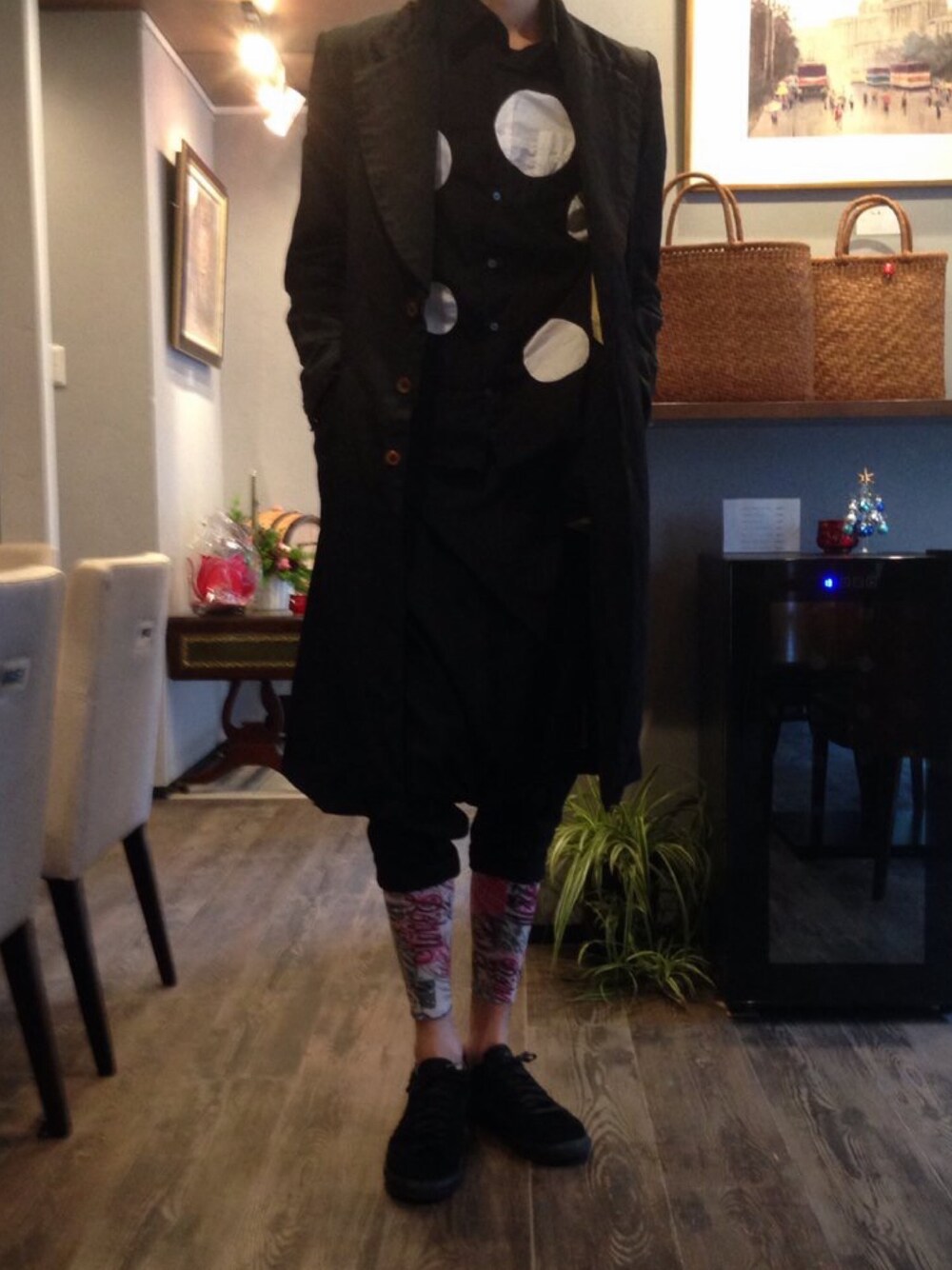COMME des GARÇONS HOMME PLUS、BLACK COMME des GARÇONS 、ANREALAGEといった自分の中で好きなブランドで固めたコーデです^o^ COMME des GARÇONS HOMME PLUSの独特な感じをBLACKやANREALAGEが後押しして全体的にブラックなコーデに仕上がりました! PLUSのレギンスは立ち上がりそうそう完売して再生産が決まったほどのアイテムでgetできてよかったです^o^