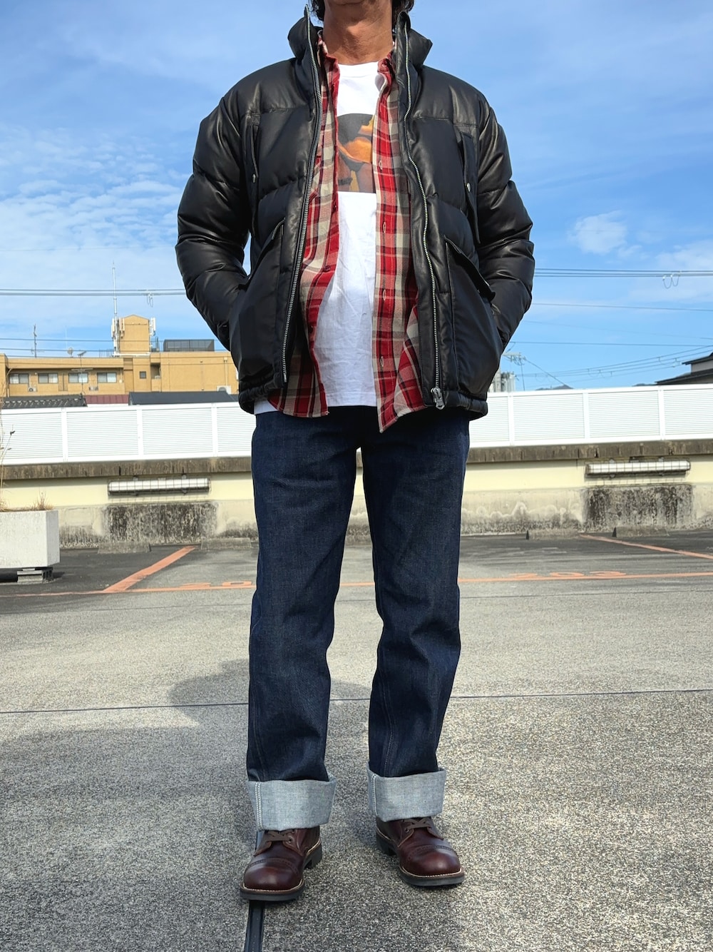 いつもいいねお気に入りありがとうございます🙏 レザーダウンでアメカジ😆
