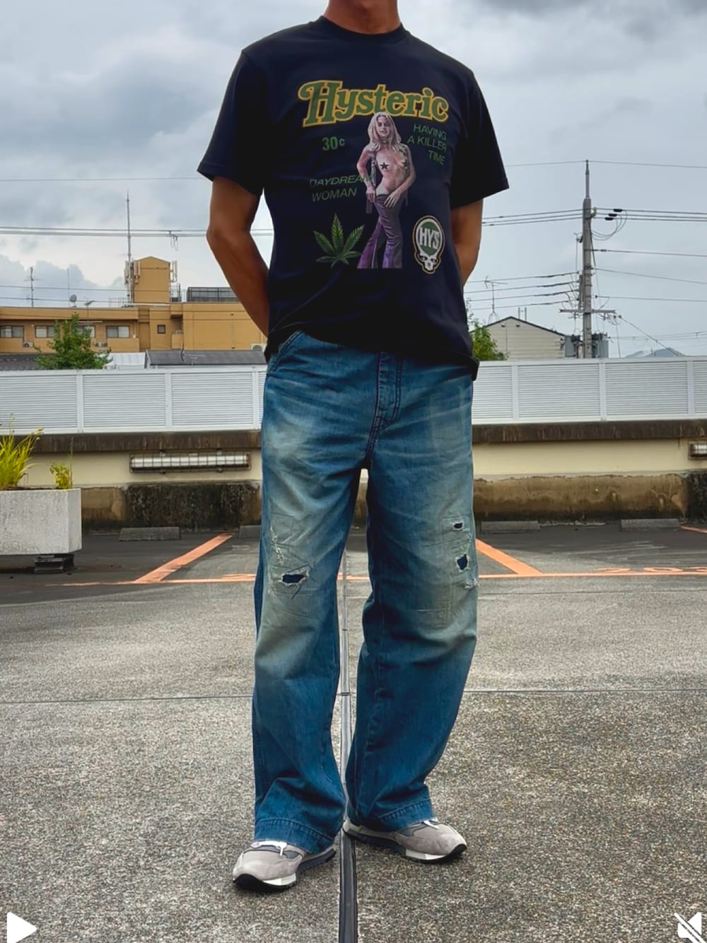 いつもいいねsaveありがとうございます😊 ヒスのTシャツにヒスのワークデニムです。足元はNBでいつも通りのコーデって感じです😂