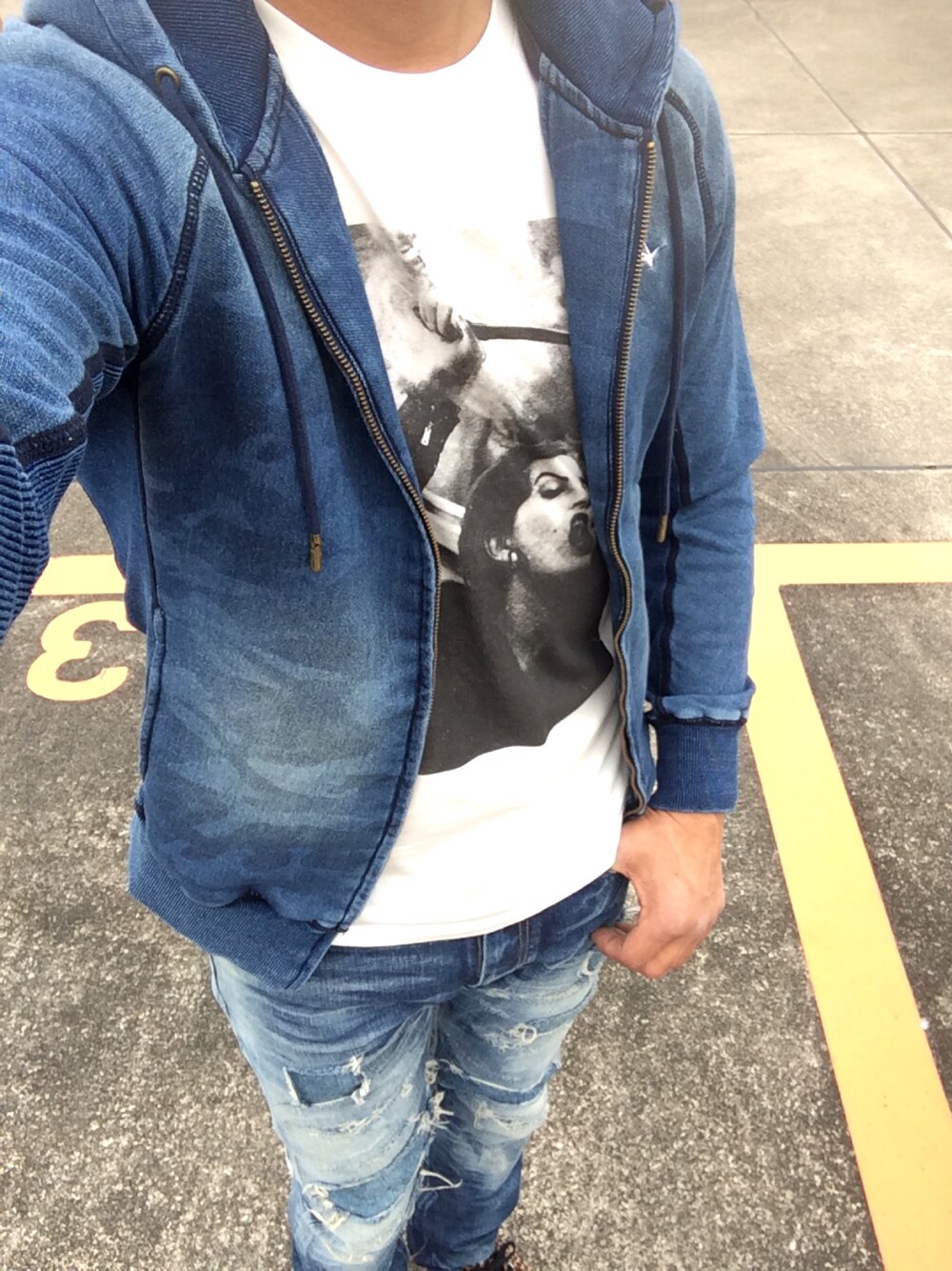 hiro(⁎⁍̴̆Ɛ⁍̴̆⁎)のパーカー「1PIU1UGUALE3 RELAX(ウノピゥウノウグァーレトレ)ジョグデニムカモフラージュ柄フードパーカ / 迷彩」を使ったコーディネート