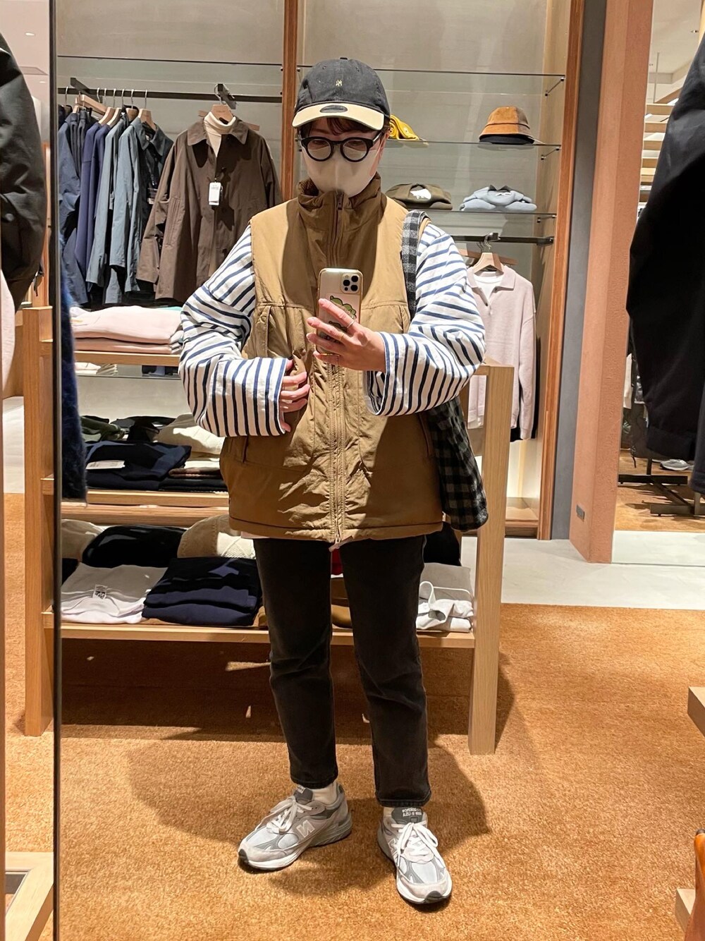バスクシャツにダウンベスト Instagram @hiro___412