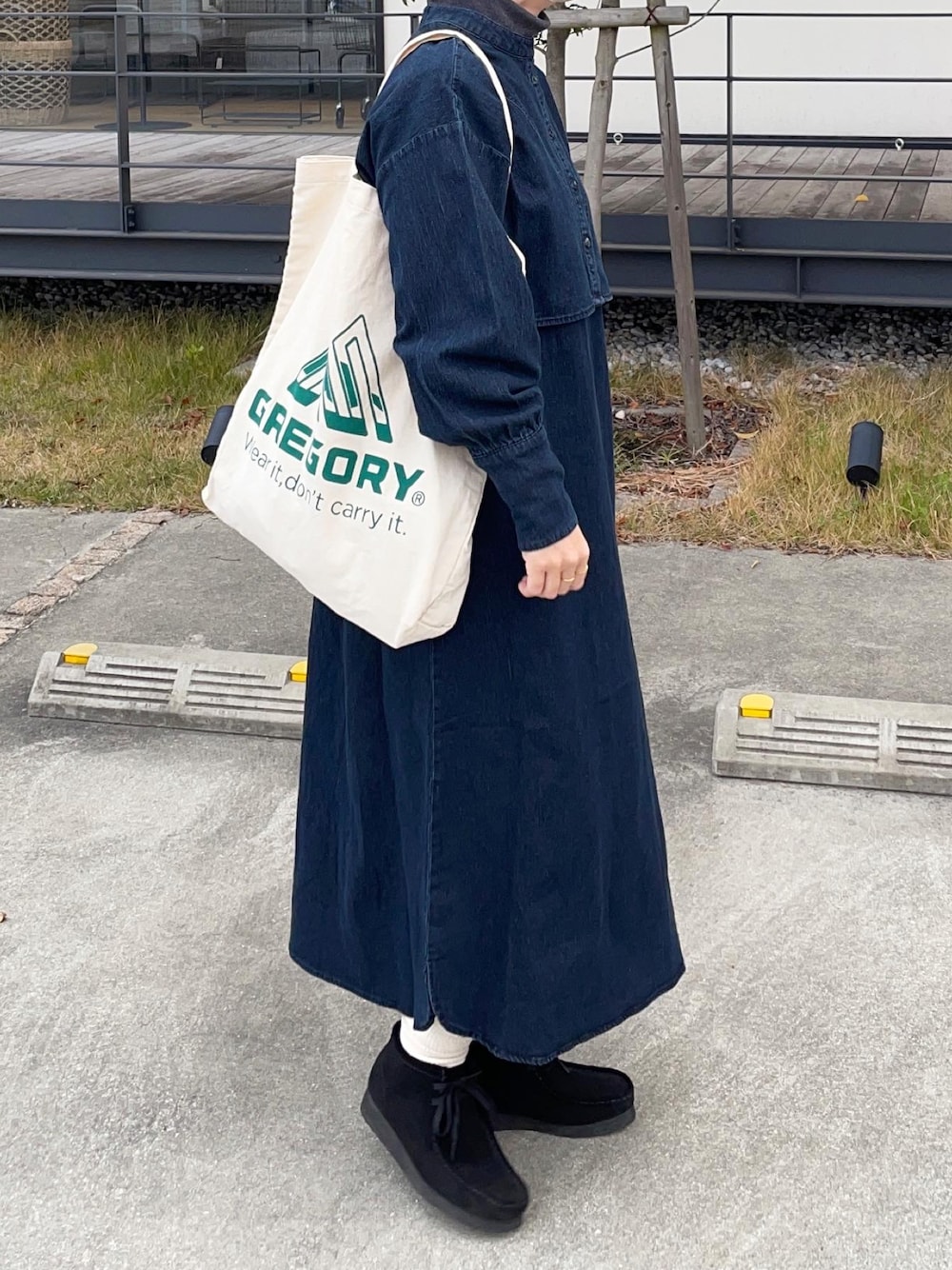 デニムワンピースにワラビーブーツ Instagram @hiro___412
