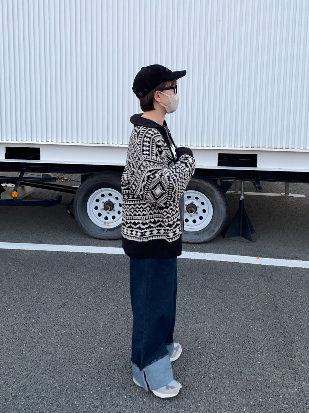 カウチンカーディガンにワイドデニム Instagram @hiro___412