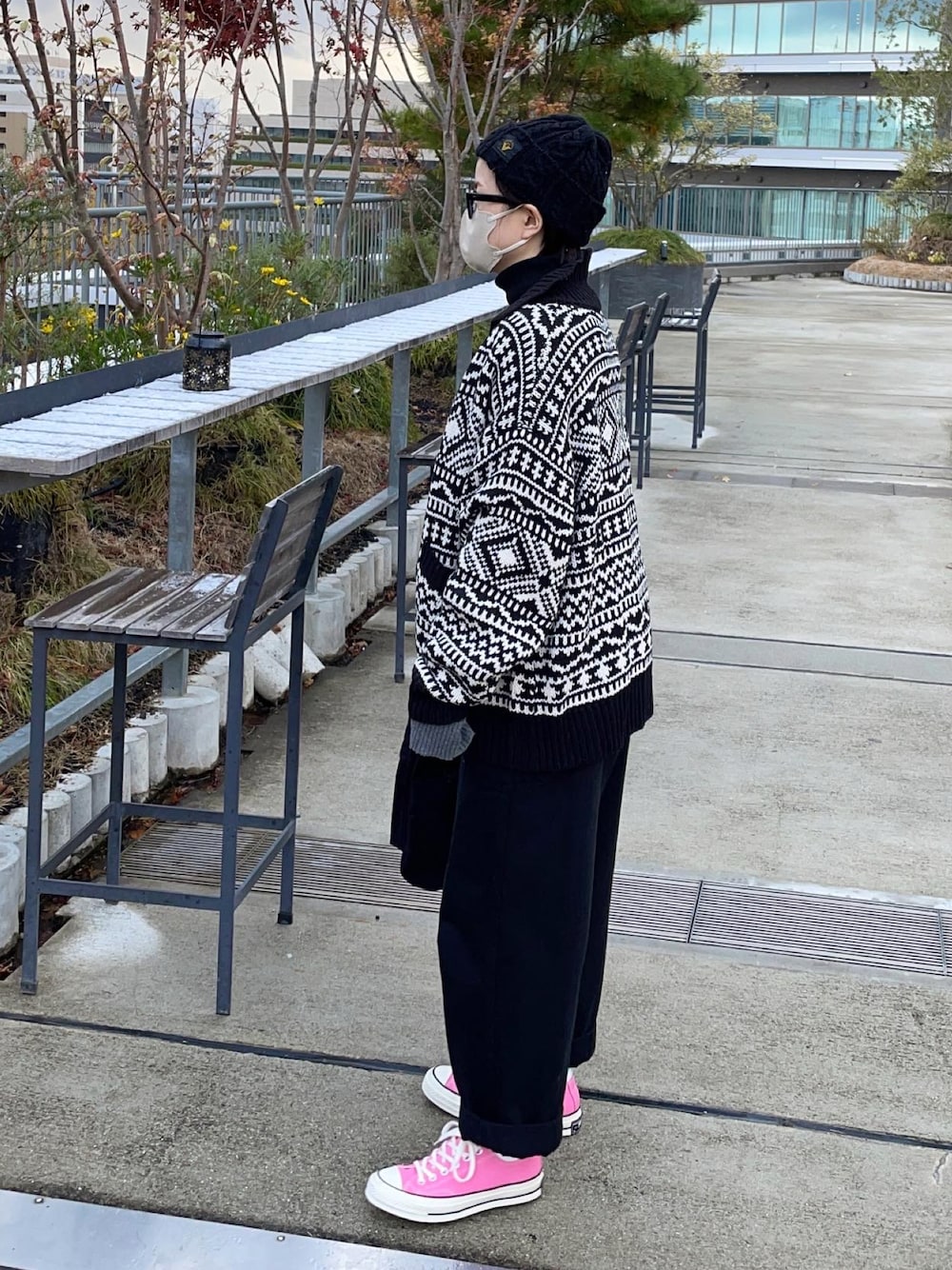 オーバーオールにカウチンカーディガン Instagram @hiro___412