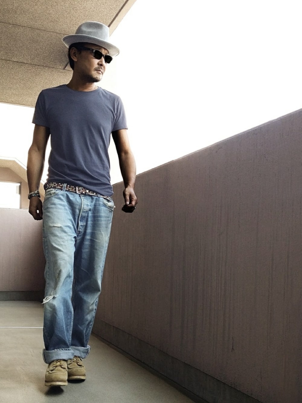 HTC (DAVE HAT) Ray-Ban (RB5130) RRL (CREW NECK T-SHIRT) HTC (10000 ONE LINE BR WHT) HTC (WONDERSTRIPS BR) HTC (CHAOS BELT) Levi's501xx (80s) REDWING8173 (刺繍羽タグ 96s)