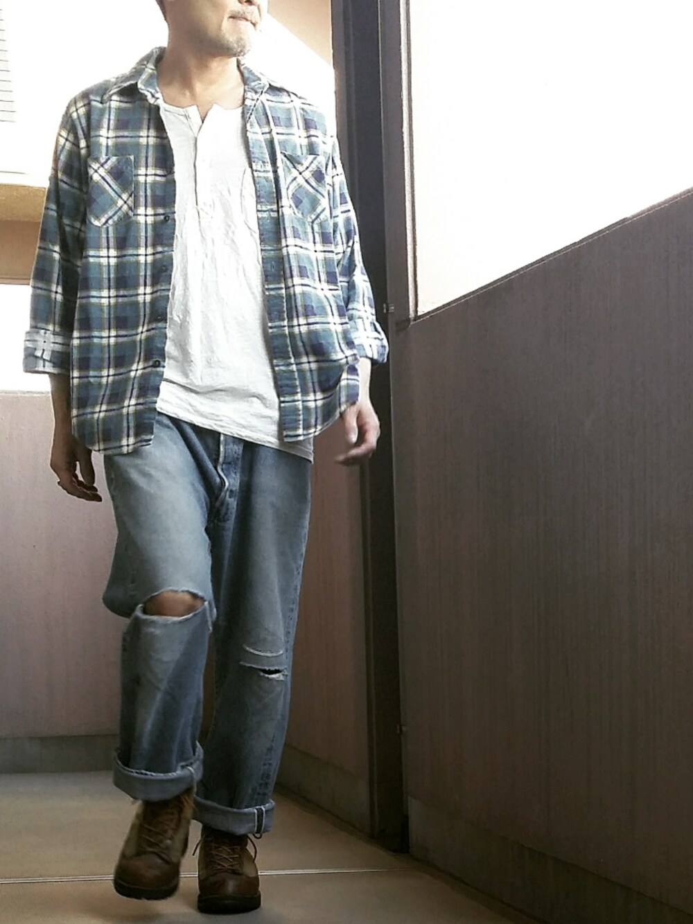 Sportswear BY COUNTRYTOUCH (Flannel Work Shirt 70s) SHADES OF GREY (HENRY T-SHIRT) Levi's501 (66前期) Vintage DANNER LIGHT (90s)