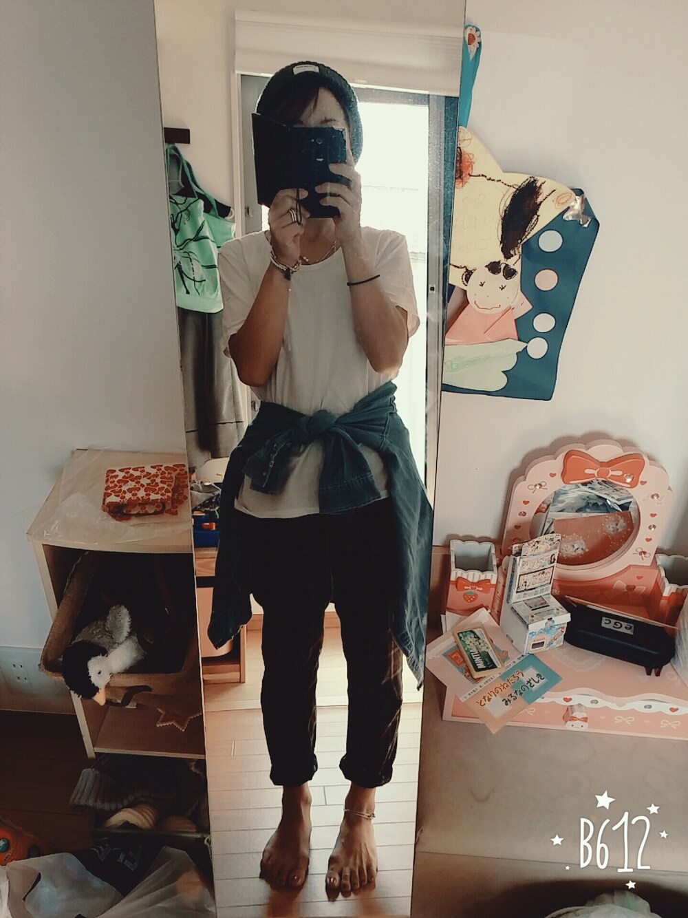 暑いですね!暑い日にはTシャツが一番!夕方になると肌寒くなるのでシャツを腰に巻いて! 公園にお出かけ!