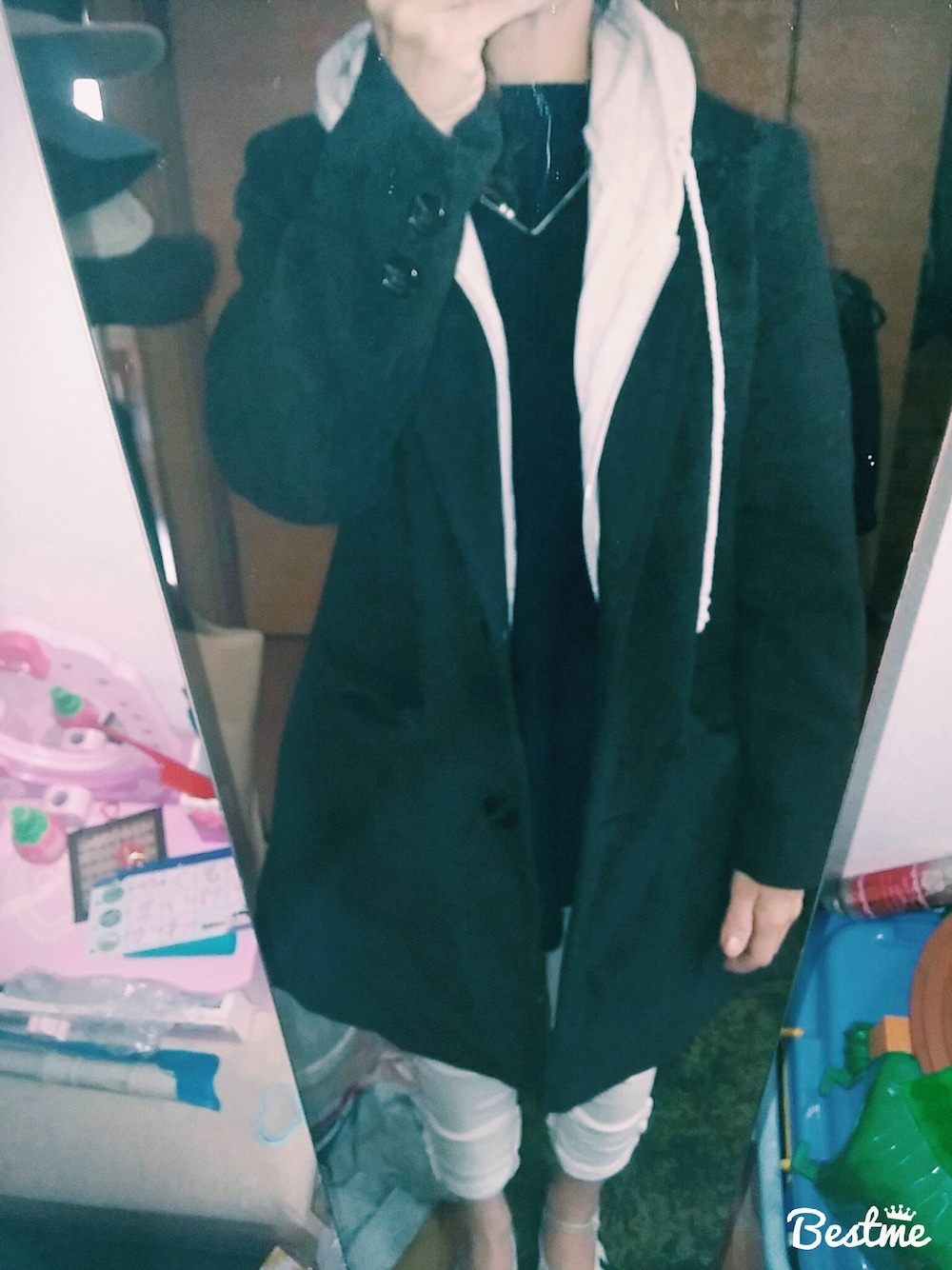 アウターインアウター❗ パーカーにコートを重ね着してみたよ!チェスターコートをカジュアルにしてみた! 寒くなってきたからこれもありだね🎵