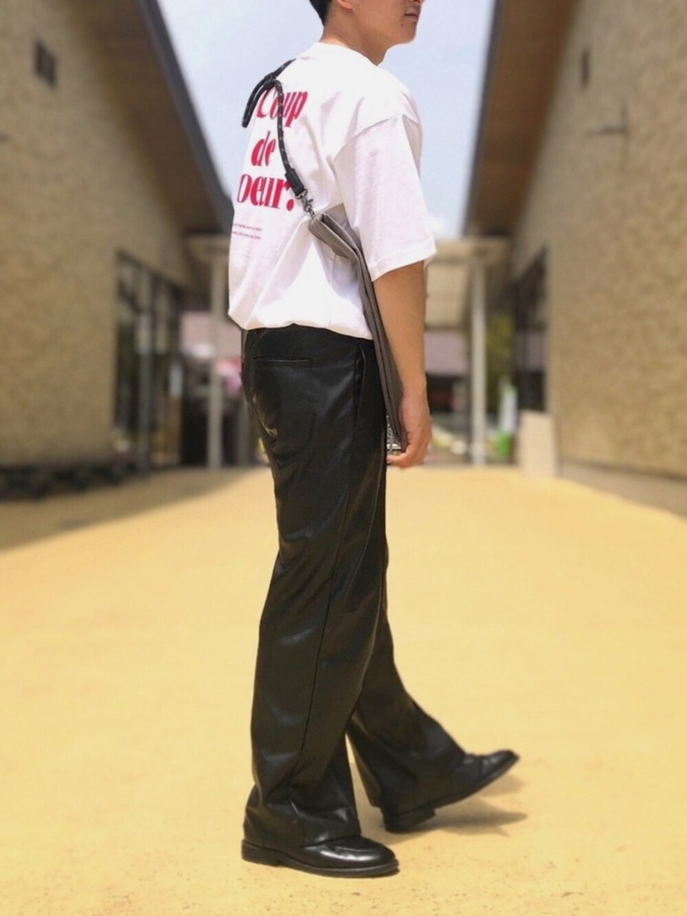 今日のコーデはバックプリントTシャツ を使った綺麗めカジュアルコーデ✨ 赤い文字プリントが 映えるように、でも素材で遊び心 が欲しい!と思ってフェイクレザー のボトムを合わせてみました🌱 ちなみにボトムはレディースです🐶 足元はローファーを合わせて より綺麗めにも寄せてます♪ タックインすると脚長くみえるので 低身長カバーも欠かさない笑 どちらも合わせやすくて着やすいのでぜひ皆さんも試してみてください! このコーデが少しでも気に入って頂けましたら いいね・お気に入り・フォローお待ちしております♪