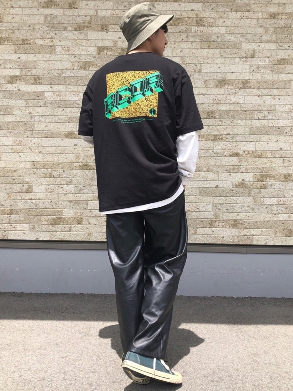 ご覧いただきありがとうございます♪ またまたバックプリントT でコーディネートしてみました! 今回はBlackにインナーを白でレイヤード バケハとレザーのボトムで カジュアル感満載🤗 ぜひ皆さんもお試しください!