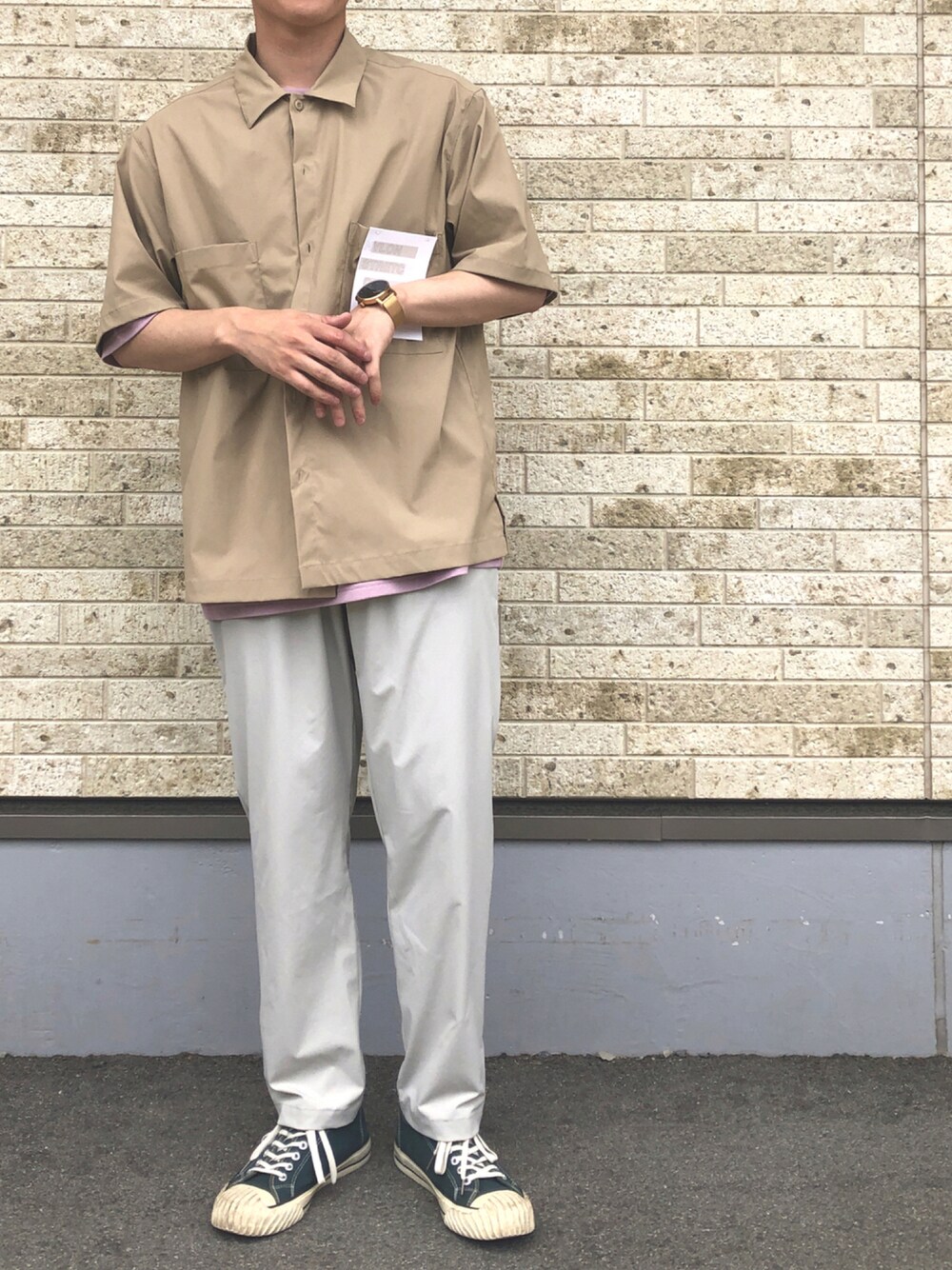 たかやん(ITEMS URBANRESEARCH)のシャツ/ブラウス「『セットアップ着用可能』ナイロンストレッチ タイプライター半袖シャツ」を使ったコーディネート