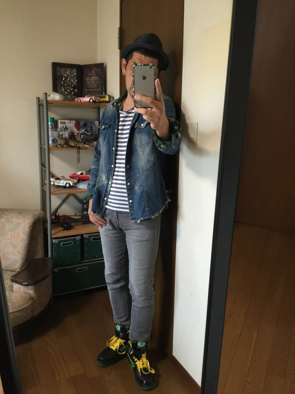 友人との約束がキャンセルになり、さて?と考えていると、親父さんから野暮用を言い付かり、ちょいとお出かけ。 ダメージの入ったデニムシャツにUNIQLOのジャージーデニムのグレーをあわせてみました。 ちょい秋カジュアルスタイルで(~_~;)