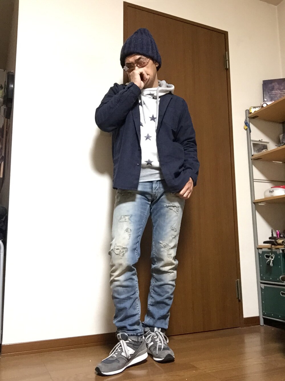 おはようございますニャ〜^_^ 何時も閲覧して頂きましてありがとうございます。また、いいね、セーブ、フォロー、コメ等重ね重ねありがとうございます。 昨日のクリスマスは風呂の大掃除と年末の買い物で終わってしまいました💦 そんなお買い物コーデを(笑) メーカー不明のリバーシブルの星柄パーカーにネイビーのシャツにダメデニ、髪がバサバサだったのでニットキャップ、足元は歩きやすいスニーカーでホームセンターにレッツゴー*\(^o^)/* 来年は可愛い彼女とクリスマスを過ごしたいわぁ〜😂