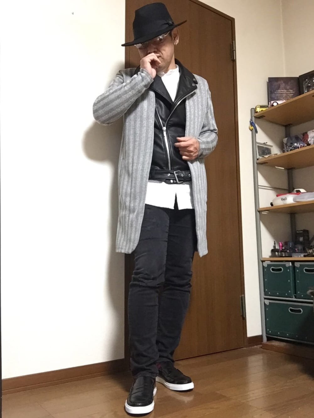 こんばんは、浩志です^^ いつも閲覧して頂きありがとうございます。また、いいね、SAVE、フォロー、コメ等その他諸々ありがとうございます。 先日、ショッピングモール内にある皮膚科に行きまして、薬局の順番待ちの間の暇つぶしにZARAをウロウロしていると・・・おっ!と発見したライダース風のベスト、何とセール価格で3999円Σ(・□・;) 思わず一目惚れで購入(笑)+同じく3999円のノーカラーのジャケット?コート?を合わせてみました。 ライダースの襟を出して見たんですが・・・いかがでしょうか?