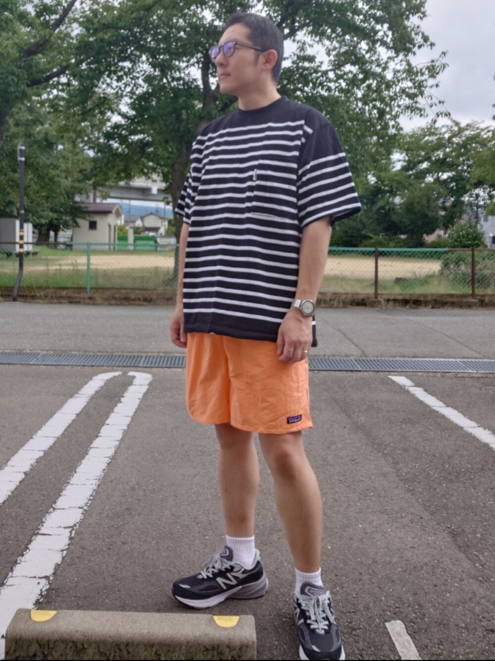 ひろやすのTシャツ/カットソー「【MONTKEMMEL / モンケメル】オーバーサイズ クルーネック/パネルボーダー /バスクTシャツ」を使ったコーディネート