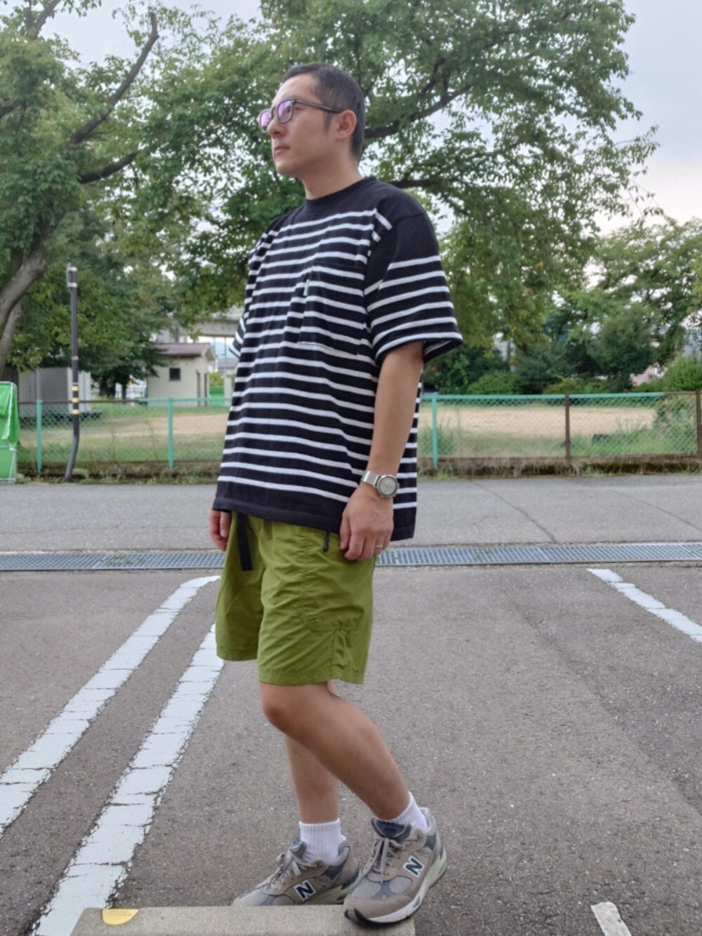 ひろやすのTシャツ/カットソー「【MONTKEMMEL / モンケメル】オーバーサイズ クルーネック/パネルボーダー /バスクTシャツ」を使ったコーディネート