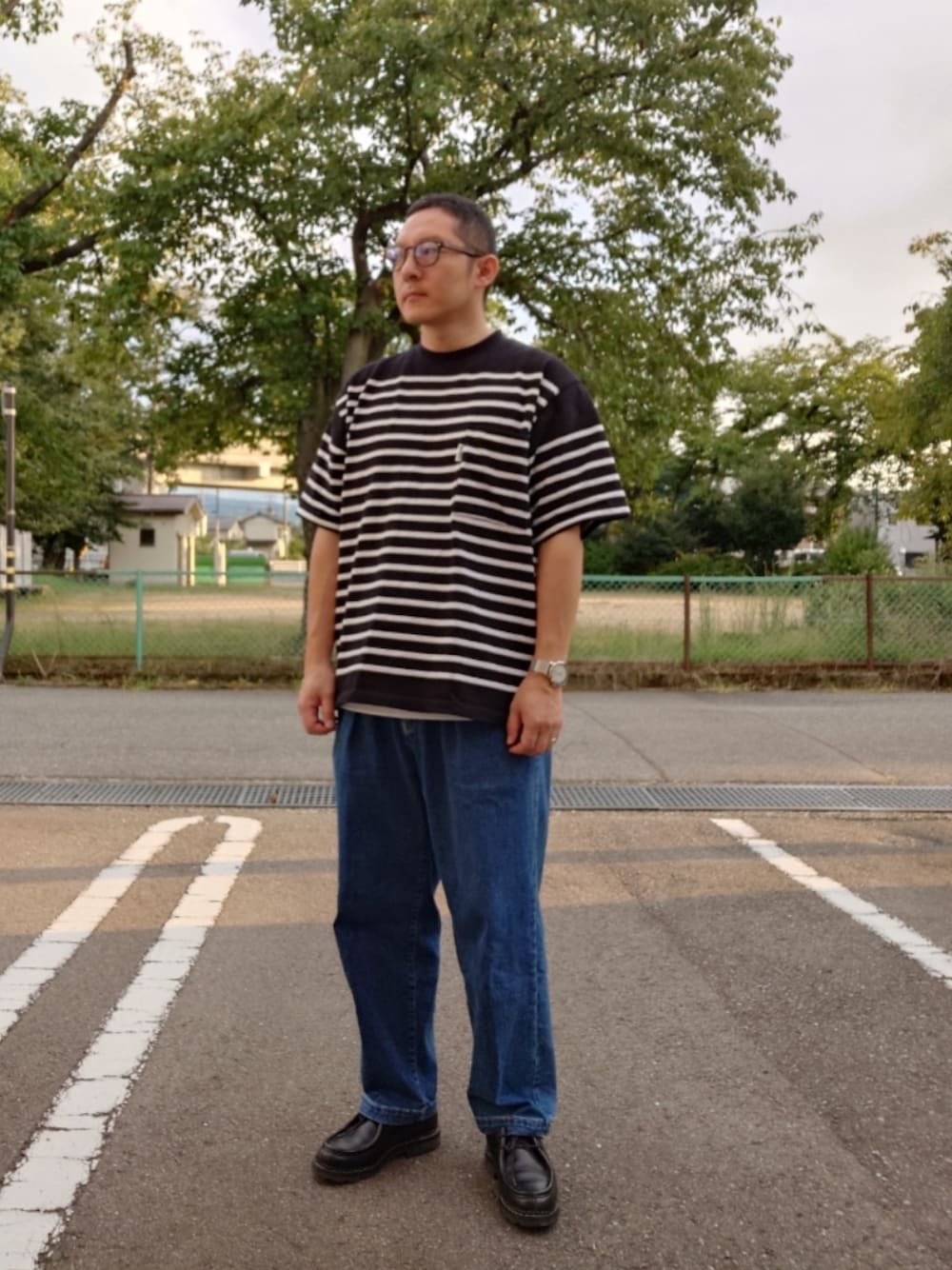 ひろやすのTシャツ/カットソー「【MONTKEMMEL / モンケメル】オーバーサイズ クルーネック/パネルボーダー /バスクTシャツ」を使ったコーディネート