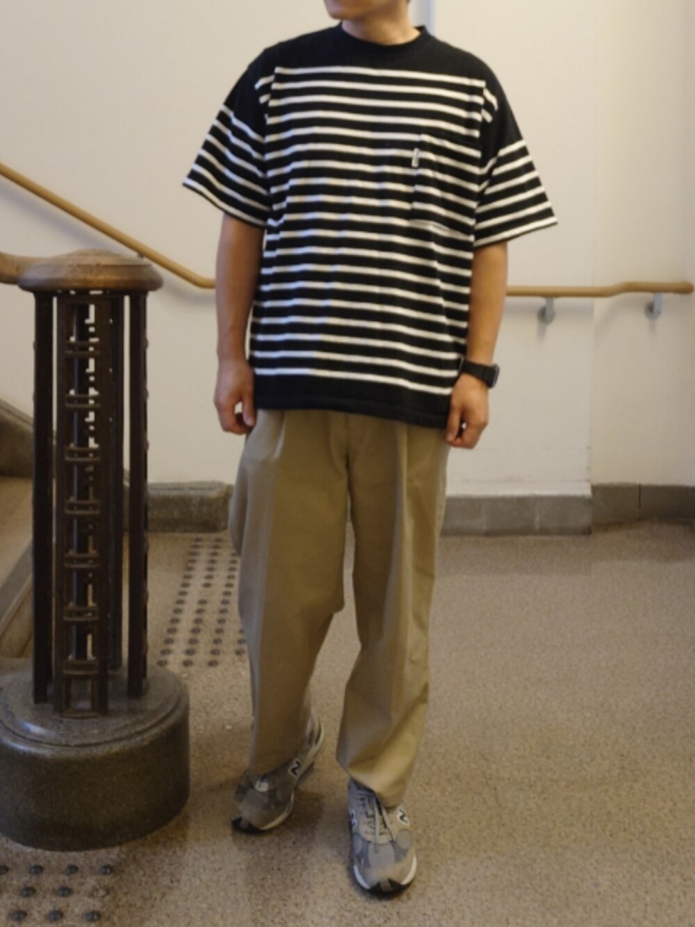 ひろやすのTシャツ/カットソー「【MONTKEMMEL / モンケメル】オーバーサイズ クルーネック/パネルボーダー /バスクTシャツ」を使ったコーディネート