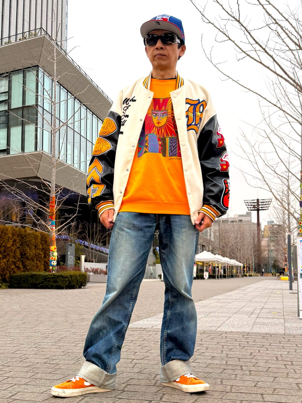 スウェット、スタジャン、スニーカーにあるオレンジでリンクしてみました。 このスタジャンは、DJ KOOさんも最近愛用してるみたいですね。