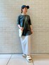 Hirom(SALON adam et rope' 新宿NEWoMan)のTシャツ/カットソー「ATON SUVIN60/2 ROUND HEM T-SHIRT KKAGNM0016」を使ったコーディネート